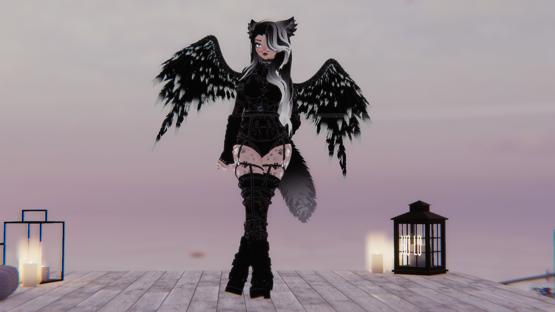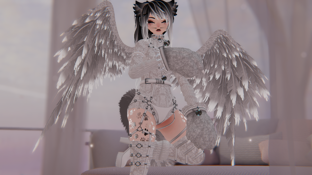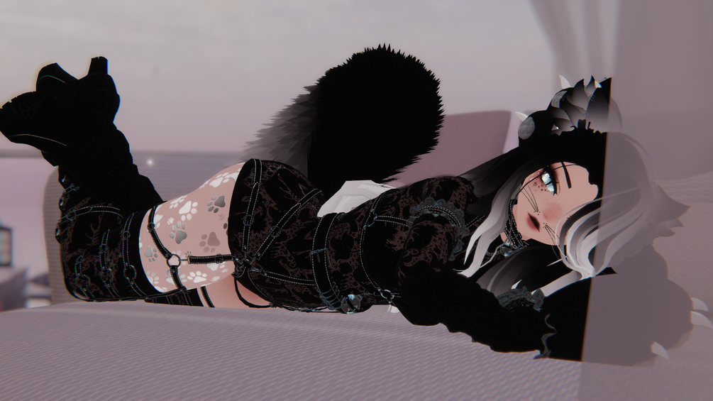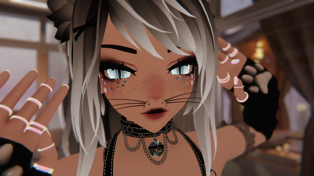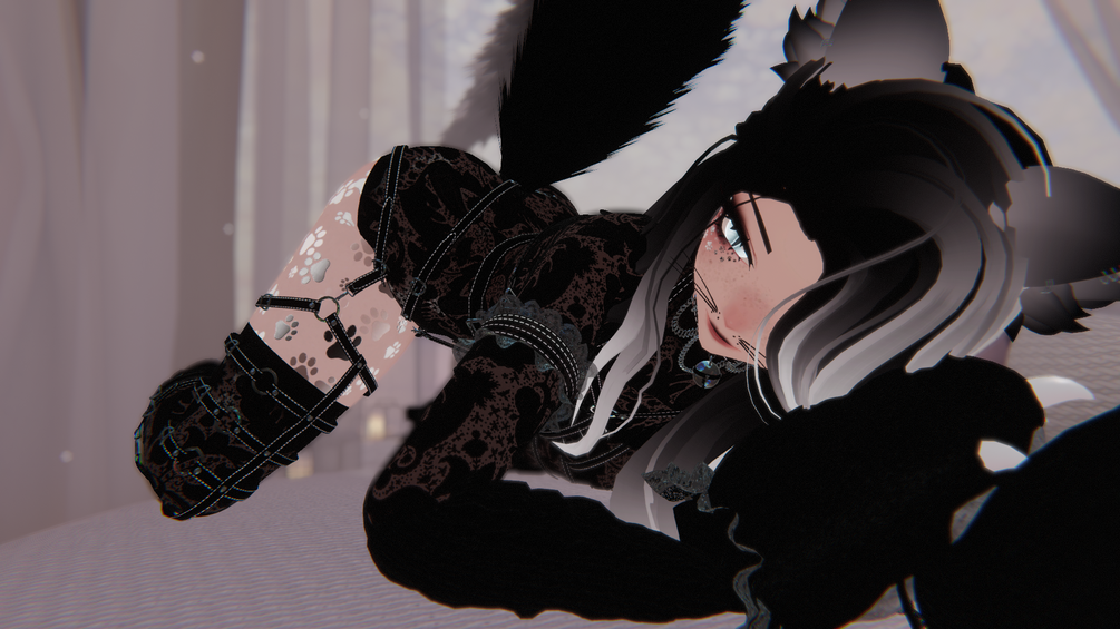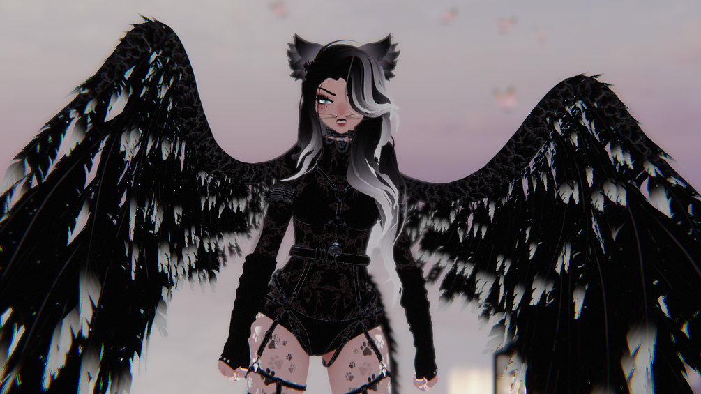 With the original name, Kat the cat-girl, Kat was an angel who fell from heaven hitting multiple trees on the way down. The first tree stripped her of her halo. The second tree happened to be a cat-girl tree, giving her cat ears and a tail. Then after hitting the ground landing in a tar pit she acquired a dark mode. Kat loves long walks on the beach, sitting in front of mirrors being cute, and dropping it like a thot on the weekends. After long weekends of causing seismic events on the dance floor, she likes to go back home and sleep for 18-26 hours a day. She comes with 2 hair styles, multiple clothing toggles and a solar system sized orbit for the wearer.