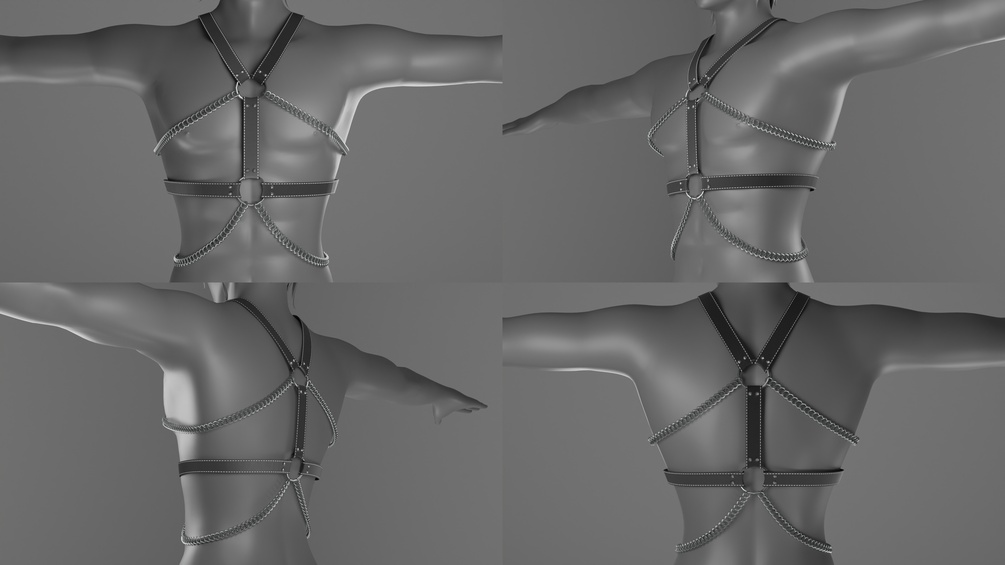 This is a from scratch Male Harness Pack. All harnesses will include a black base color and a white base color for ease of recoloring. All harnesses include clean quad topology. Extra topology was left in the mesh to keep more detail. The tris can be easily reduced for further optimization if you choose to do so. I hope you enjoy the pack and I have further works to come. Thank you!!